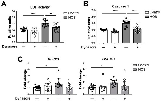2.2. Dynasore Reduces HOS-Induced Inflammasome Activation