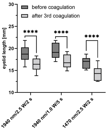 4.3. Evaluation of the Laser-Induced Eyelid Shortening