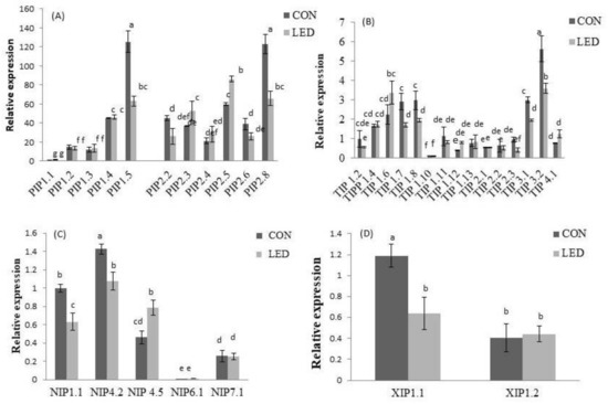 2.3. Seeds AQP Isoforms Were Differentially Expressed under Control and R LED-Irradiation during Phase III