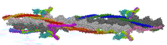 - Poole, K.J.V.; Lorenz, M.; Evans, G.; Rosenbaum, G.; Pirani, A.; Craig, R.; Tobacman, L.S.; Lehman, W.; Holmes, K.C. A comparison of muscle thin filament models obtained from electron microscopy reconstructions and low-angle X-ray fibre diagrams from non-overlap muscle. J. Struct. Biol. 2006, 155, 273–284. [Google Scholar] [CrossRef]