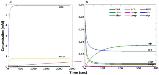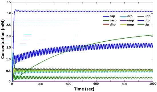 2.3. Analysis of the Dynamic Modes of Functioning of the Model (1) De Novo Pyrimidine Nucleotide Synthesis