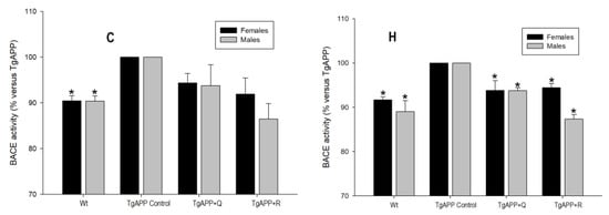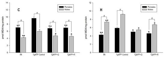 - Apelt, J.; Bigl, M.; Wunderlich, P.; Schliebsm, R. Aging-related increase in oxidative stress correlates with developmental pattern of beta-secretase activity and beta-amyloid plaque formation in transgenic Tg2576 mice with Alzheimer-like pathology. Int. J. Dev. Neurosci. 2004, 22, 475–484. [Google Scholar] [CrossRef] [PubMed]