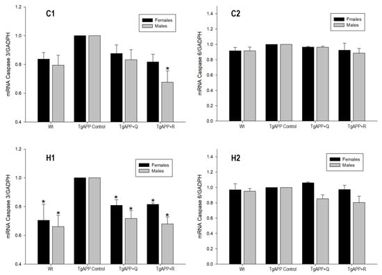 - Albrecht, S.; Bogdanovic, N.; Ghetti, B.; Winblad, B.; LeBlanc, A.C. Caspase-6 activation in familial Alzheimer disease brains carrying amyloid precursor protein or presenilin I or presenilin II mutations. J. Neuropathol. Exp. Neurol. 2009, 68, 1282–1293. [Google Scholar] [CrossRef] [PubMed]