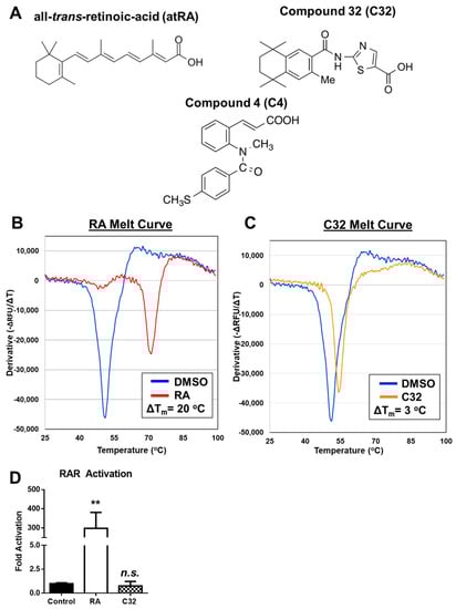 2.1. Characterization of C32 as Novel atRA-like Compound That Binds CRABP1