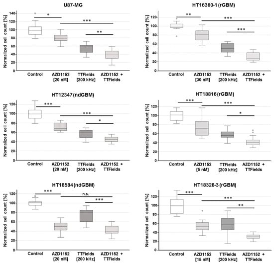 Chicago/Turabian StyleKrex, Dietmar, Paula Bartmann, Doris Lachmann, Alexander Hagstotz, Willi Jugel, Rosa S. Schneiderman, Karnit Gotlib, Yaara Porat, Katja Robel, Achim Temme, and et al. 2023. "Aurora B Kinase Inhibition by AZD1152 Concomitant with Tumor Treating Fields Is Effective in the Treatment of Cultures from Primary and Recurrent Glioblastomas" International Journal of Molecular Sciences 24, no. 5: 5016. https://doi.org/10.3390/ijms24055016