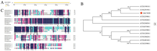 2.1. Gene Structure, Phylogenetic Analysis, and Protein Sequence Alignment Analysis of GhC3H20