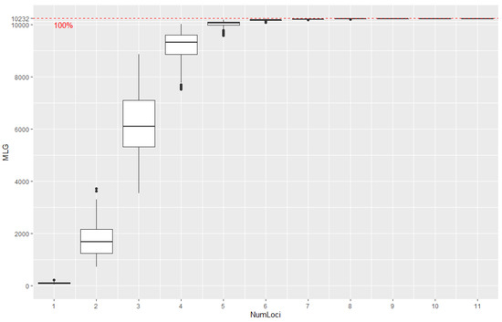 - Peakall, R.; Smouse, P.E. Genalex 6: Genetic analysis in Excel. Population genetic software for teaching and research. Mol. Ecol. Notes 2006, 6, 288–295. [Google Scholar] [CrossRef]