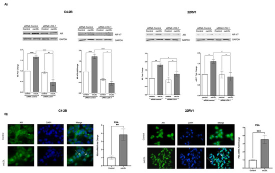 2.4. LOX-1/oxLDL Induces AR and AR-V7 Overexpression in C4-2B and 22RV1 Cells