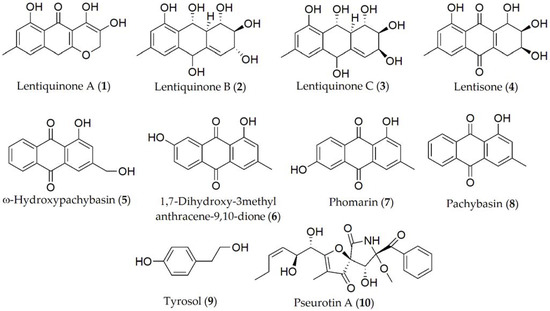 | Lentiquinone B (2) | Antibiotic activity | [72] |