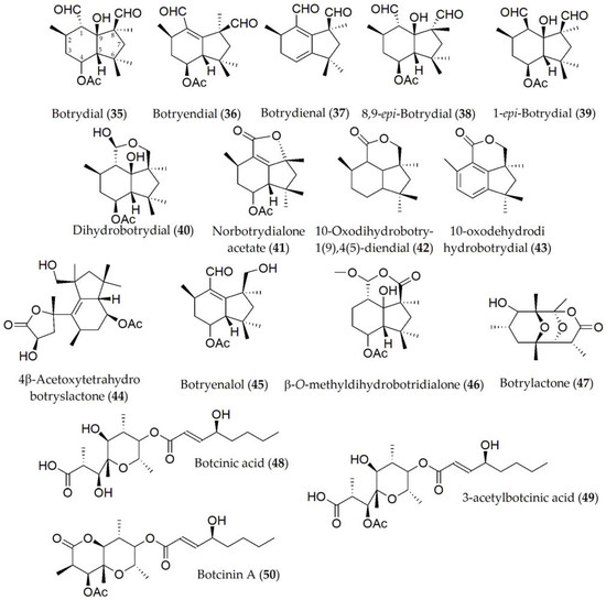 | Botrydial (35) | Anti-bacterial activity | [140] |