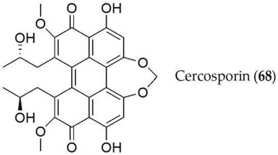 | Cercosporin (68) | Anti-tumoral activity | [142] |
