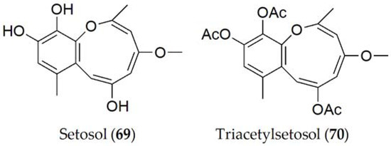 | Setosol (69) | Anti-bacterial activity Fungicidal activity | [122] |