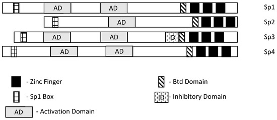 - Hagen, G.; Dennig, J.; Preiß, A.; Beato, M.; Suske, G. Functional Analyses of the Transcription Factor Sp4 Reveal Properties Distinct from Sp1 and Sp3. J. Biol. Chem. 1995, 270, 24989–24994. [Google Scholar] [CrossRef] [PubMed]