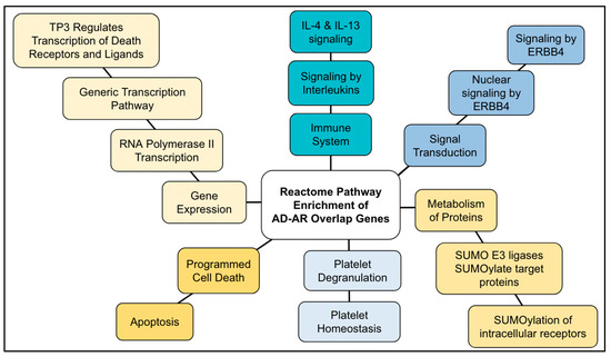 Diagram of the Reactome pathway enrichment of AD–AR overlap genes. The results shown in Table 5 are summarized.