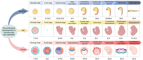 - Kimmel, C.B.; Ballard, W.W.; Kimmel, S.R.; Ullmann, B.; Schilling, T.F. Stages of embryonic development of the zebrafish. Dev. Dyn. 1995, 203, 253–310. [Google Scholar] [CrossRef]