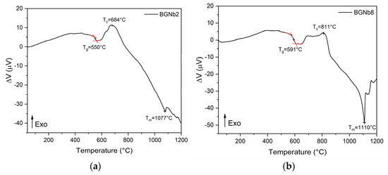 DTA spectra of (a) BGNb2; (b) BGNb8.