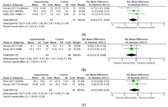 Chicago/Turabian StylePanizzutti, Bruna, David Skvarc, Sylvia Lin, Sarah Croce, Alcy Meehan, Chiara Cristina Bortolasci, Wolfgang Marx, Adam J. Walker, Kyoko Hasebe, Bianca E. Kavanagh, and et al. 2023. "Minocycline as Treatment for Psychiatric and Neurological Conditions: A Systematic Review and Meta-Analysis" International Journal of Molecular Sciences 24, no. 6: 5250. https://doi.org/10.3390/ijms24065250