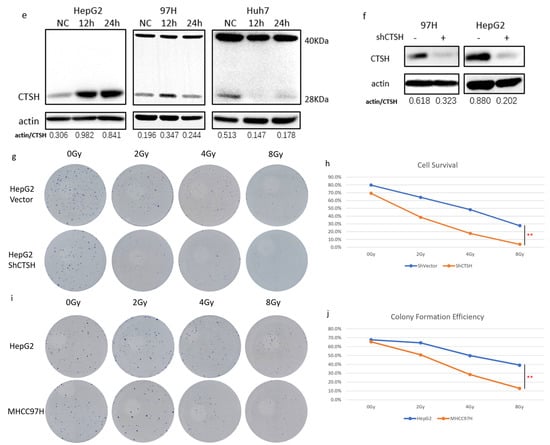 2.2. CTSH Participated in Radioresistance Regulation of HCC Cells