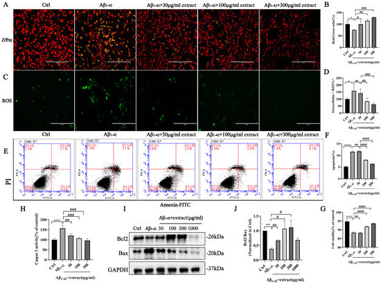 2.8. Extract Treatment Alleviated Aβ1–42-Induced Apoptosis by Aβ1–42 in PC12 Cells