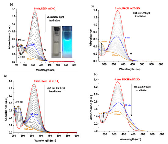 2.4. Effects of UV Light Irradiation on the Optical Spectra