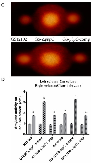2.2. Endocellulase and Amylase Secreted by pbpC Derivatives