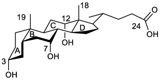 - Meijide, F.; de Frutos, S.; Soto, V.H.; Jover, A.; Seijas, J.A.; Vázquez-Tato, M.P.; Fraga, F.; Tato, J.V. A Standard Structure for Bile Acids and Derivatives. Crystals 2018, 8, 86. [Google Scholar] [CrossRef]