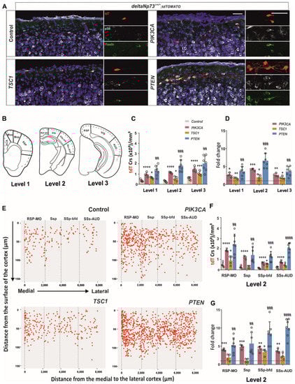Figure 3) were acquired using a 63× oil immersion objective. Then, 20 to 60 z-stacks of 2 µm optical section were defined depending on the thickness of the sections and the size of the neurons. tdTomato + neurons were counted and analyzed for their position using the ImageJ software. Three sections from each biological replicate at the embryonic, P1, and P24 stages were analyzed corresponding to three different brain levels.
