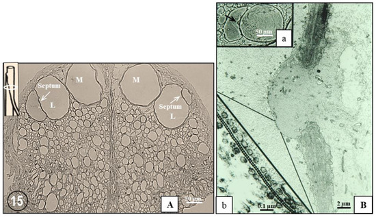 - Peracchia, C. A system of parallel septa in crayfish nerve fibers. J. Cell Biol. 1970, 44, 125–133. [Google Scholar] [CrossRef]