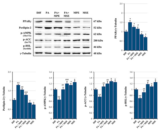 2.3. MPE and MSE Inhibit PPARγ and Activate AMPK