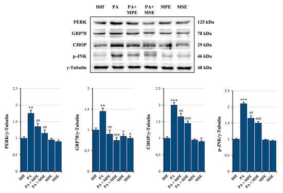 2.4. MPE and MSE Reduce PA-Induced ER Stress in 3T3-L1 Adipocytes