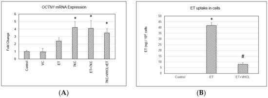 2.2. OCTN1 Gene (SLC22A4) Expression and ET Uptake in Cells
