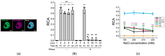 - Kitamura, A.; Nakayama, Y.; Shibasaki, A.; Taki, A.; Yuno, S.; Takeda, K.; Yahara, M.; Tanabe, N.; Kinjo, M. Interaction of RNA with a C-terminal fragment of the amyotrophic lateral sclerosis-associated TDP43 reduces cytotoxicity. Sci. Rep. 2016, 6, 19230. [Google Scholar] [CrossRef] [PubMed]
