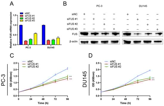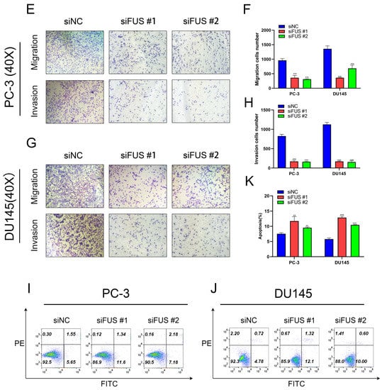 2.10. Inhibition of FUS Could Reduce Proliferation, Migration and Invasion, and Promote Apoptosis of PCa Cells