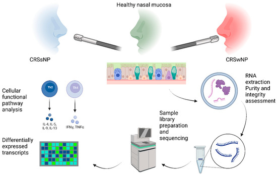- Bassiouni, A.; Ou, J.; Schreiber, A.; Geoghegan, J.; Tsykin, A.; Psaltis, A.J.; Wormald, P.-J.; Vreugde, S. The Global Transcriptomic Signature in Sinonasal Tissues Reveals Roles for Tissue Type and Chronic Rhinosinusitis Disease Phenotype. Rhinology 2020, 58, 273–283. [Google Scholar] [CrossRef] [PubMed]