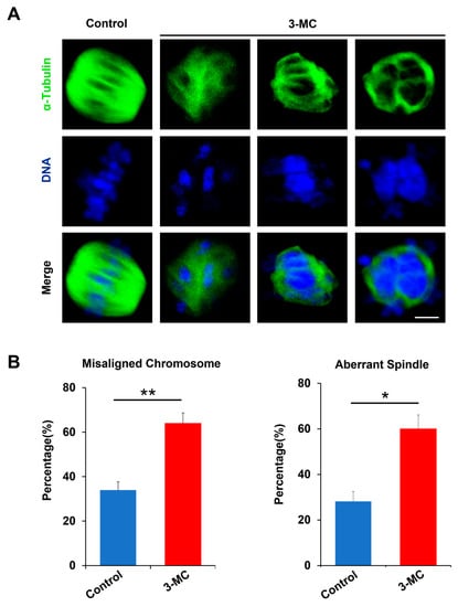 2.2. 3-MC Exposure Disrupted the Spindle Assembly and Chromosome Alignment in Oocytes