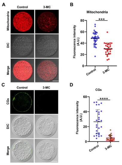 2.5. 3-MC Exposure Disrupted the Distribution of Mitochondria and Cortical Granules in Oocytes