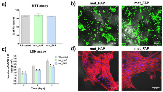 - Przekora, A. The Summary of the Most Important Cell-Biomaterial Interactions That Need to Be Considered during in Vitro Biocompatibility Testing of Bone Scaffolds for Tissue Engineering Applications. Mater. Sci. Eng. C 2019, 97, 1036–1051. [Google Scholar] [CrossRef] [PubMed]