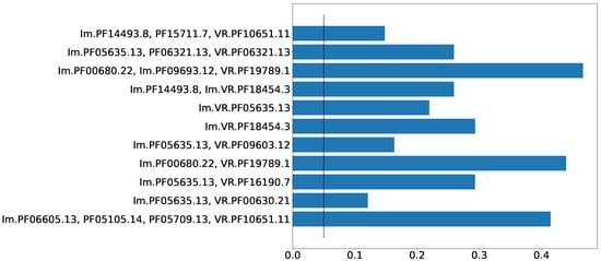 Prokaryotic defense systems are often spread via horizontal gene transfer (HGT) [18]. Nevertheless, the events of horizontal gene transfer are relatively rare. The adaptation of a laterally acquired genetic module (e.g., a defense system) to a new host should include, among other factors, the gradual bringing of the codon usage frequencies of the acquired module closer to the new host. Thus, the disparity in the codon usage bias between a putative gene system and the rest of the genome may indicate a recent HGT event. Figure 4 shows the proportion of sequences, for which the Kolmogorov–Smirnov test resulted in a significant p-value (<0.05) for eleven selected Pfam compositions. The minimum p-value for these compositions was 0.12. Thus, these Pfam compositions demonstrate significant deviations in codon usage from the rest of the sequence by which they are encoded. Although there are quite a few possible reasons for a region of a genome to have a distinctive codon usage pattern, this behavior supports, rather than disproves, the possibility of lateral transfer for these Pfam compositions.