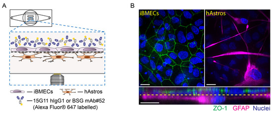 33]) using high-resolution in situ imaging. Our results indicated that the antibodies accumulated in the iBMECs but not inside the hAstros over 24 h, indicating a tight BBB model. However, when the barrier was intentionally made leaky in control experiments with subconfluent iBMECs, antibodies accumulated inside both the iBMECs and hAstros.