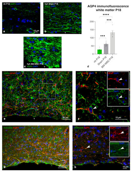 3.2. BM-MSCs Stimulate Proliferation of Astrocytes Overexpressing AQP4 in the Periventricular Edema