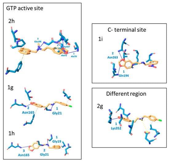 | 1g | H | H | Cl | H | 128 | GTP-binding pocket |