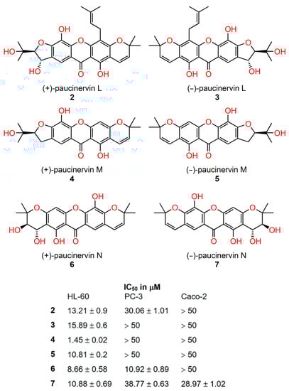 - Jia, C.; Xue, J.; Gong, C.; Li, X.; Li, D.; Li, Z.; Hua, H. Chiral resolution and anticancer effect of xanthones from Garcinia paucinervis. Fitoterapia 2018, 127, 220–225. [Google Scholar] [CrossRef] [PubMed]