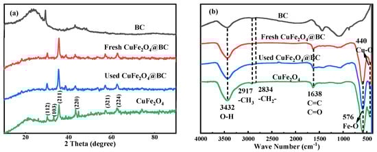 3.2. Preparation of CuFe2O4@BC Catalyst