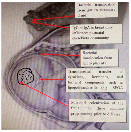 - Nyangahu, D.D.; Jaspan, H.B. Influence of maternal microbiota during pregnancy on infant immunity. Clin. Exp. Immunol. 2019, 198, 47–56. [Google Scholar] [CrossRef]