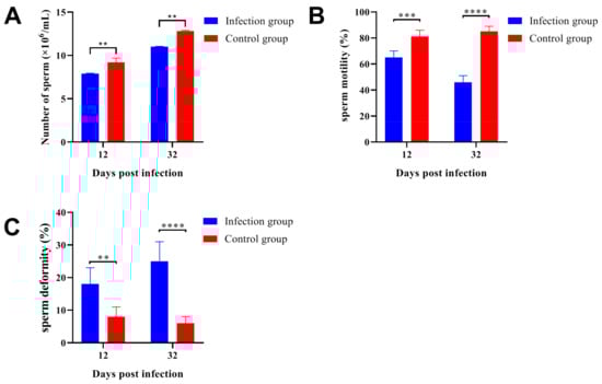 2.5. Parasitic Infection Decreased the Sperm Quality in ICR/CD-1 Male Mice