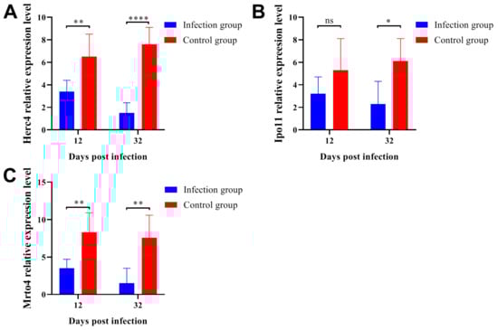 2.6. Parasitic Infection Downregulated the Gene Expression Levels Related to Spermatogenesis