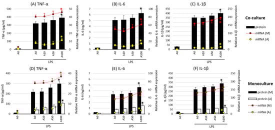 2.2. Asprosin Enhances Cytokine Production by the Co-Cultured Cells
