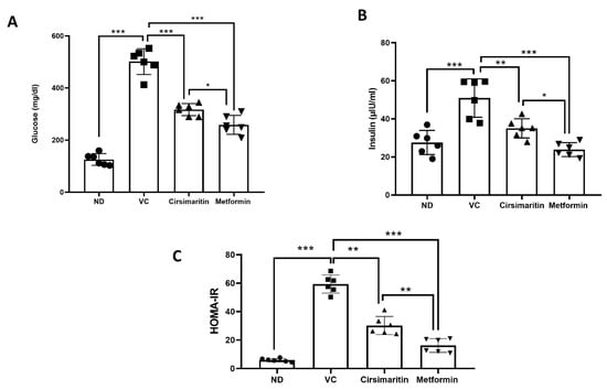 4.2.1. Measurements of Serum Glucose, Insulin, and Lipids in Rat Serum