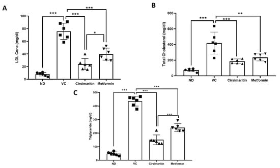 2.2. The Effect of Cirsimaritin on the Lipid Profile