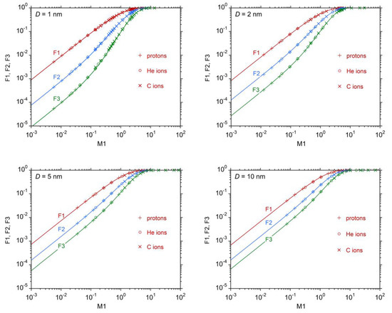 - Bantsar, A.; Hilgers, G.; Pszona, S.; Rabus, H.; Szeflinski, Z. Nanodosimetric characterization of ion beams. Eur. Phys. J. D 2014, 68, 217. [Google Scholar] [CrossRef]